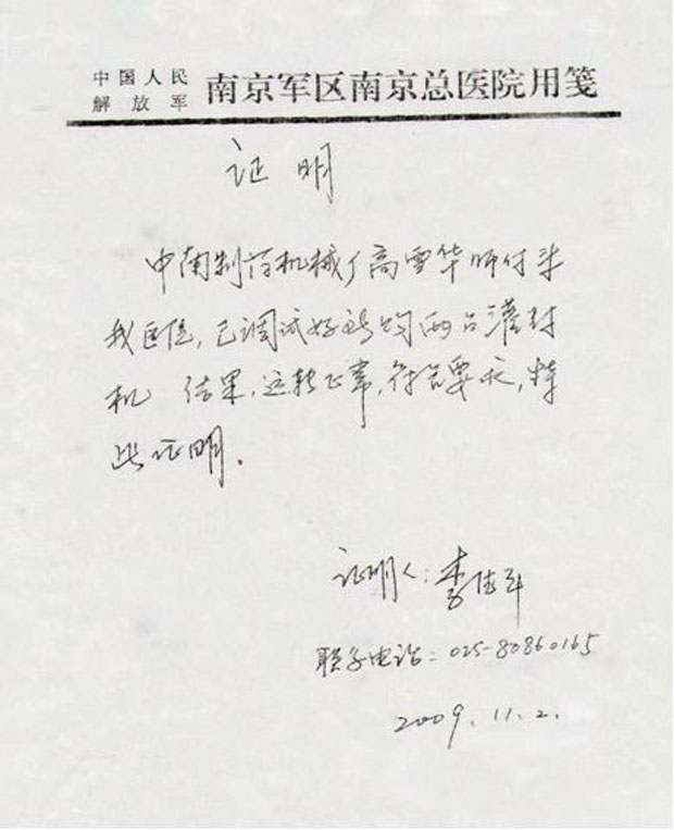2009年10月,南京軍區(qū)南京總醫(yī)院向我廠購進(jìn)ALG 5ML 安瓿拉絲灌封機(jī)一臺,ALG 10ML 安瓿拉絲灌封機(jī)1一臺,我廠調(diào)試人員于2009年11月2日到用戶調(diào)試并培訓(xùn)操作人員,機(jī)器現(xiàn)已正常投入使用。