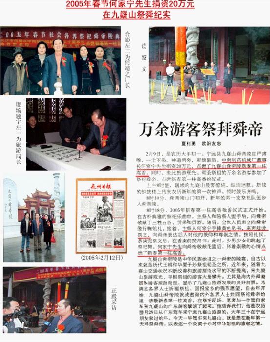 2005年春節(jié)何家寧先生捐資20萬元在九嶷山祭舜紀實