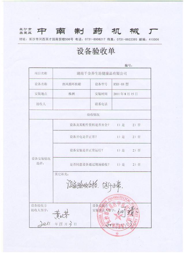 RXH-48盤熱循環(huán)烘箱在千金藥業(yè)驗(yàn)收