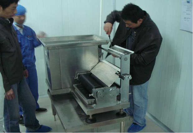 我廠生產(chǎn)的DZ-60型全自動(dòng)制丸機(jī),主要技術(shù)特點(diǎn)有兩點(diǎn):一是混合物料進(jìn)入工作腔后,特制螺桿可以將物料再一次擠揉,使從工作腔出來(lái)的物料成條形狀好,干濕度、粘稠度合適,便入下一步制丸,如物料出條不好,還可以多次擠揉,達(dá)到理想程度。二是制丸成型滾輪可精細(xì)調(diào)節(jié),便于下條順利和成型美觀。