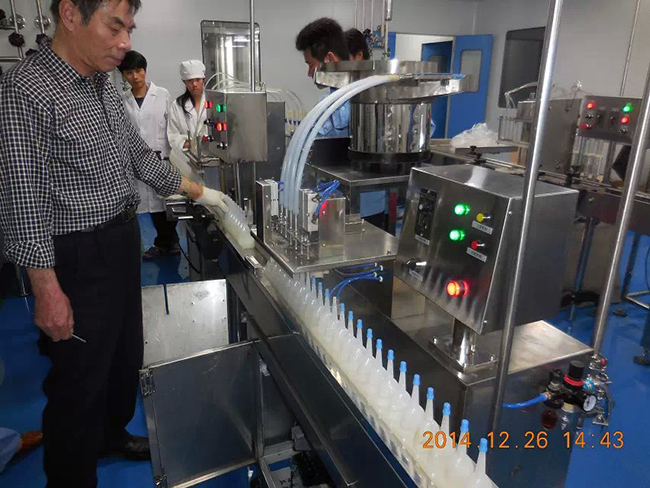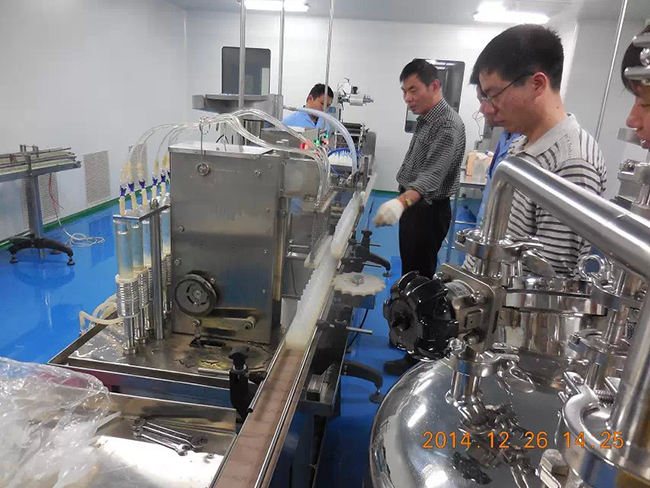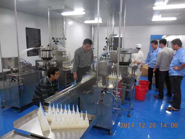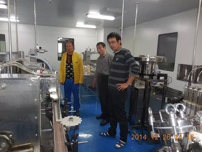 2014年12月26日,時逢毛澤東誕辰,海南皇隆制葯股份有限公司,現(xiàn)場試機(jī)驗(yàn)收我廠生產(chǎn)的2條甲硝噻灌裝壓蓋生產(chǎn)線.受到公司董事長陳益智先生,常務(wù)副總何晶先生,設(shè)備部陳風(fēng)崗先生熱情接待. 該生產(chǎn)線為直線式消泡灌裝壓蓋,為國內(nèi)研發(fā)制造. 祝海南皇隆制葯股份有限公司生意興隆!