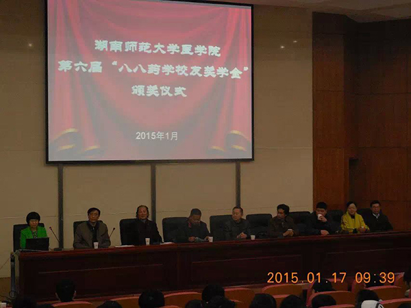 2015年1月17日,湖南師范大學(xué)醫(yī)學(xué)院第六屆“八八藥學(xué)校友獎(jiǎng)學(xué)金”頒獎(jiǎng)儀式,在湖南師大醫(yī)學(xué)院學(xué)術(shù)廳舉行。