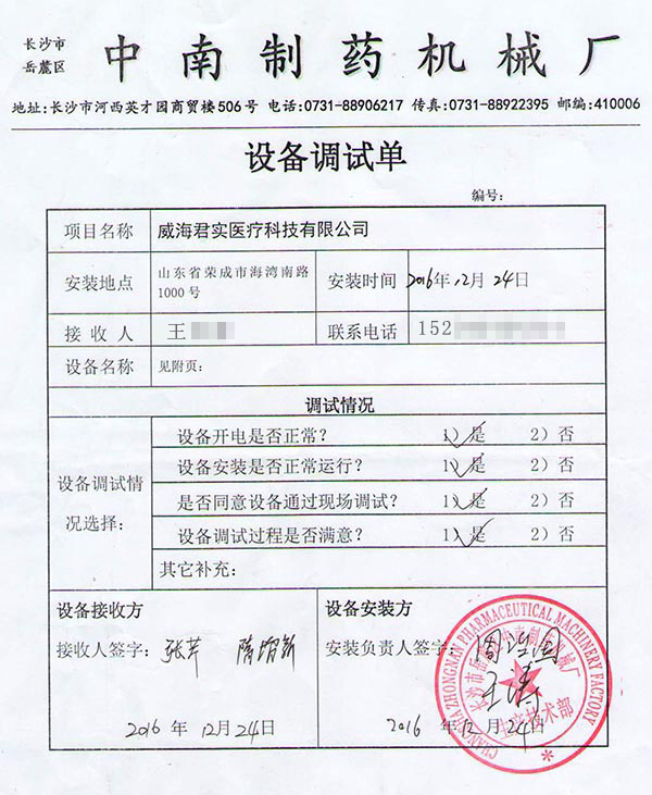 威海海洋職業(yè)學(xué)院經(jīng)過全面考察對(duì)比,最終選擇了我廠生產(chǎn)的成套制藥設(shè)備生產(chǎn)線,包括:片劑設(shè)備、全自動(dòng)膠囊填充機(jī)、顆粒粉劑設(shè)備、口服液制劑設(shè)備等27種制藥設(shè)備,2016年12月24日經(jīng)過我廠專業(yè)技術(shù)人員上門安裝調(diào)試,全套設(shè)備生產(chǎn)線全面調(diào)試安裝驗(yàn)收完成,客戶對(duì)我們的專業(yè)服務(wù)給予了高度評(píng)價(jià)。