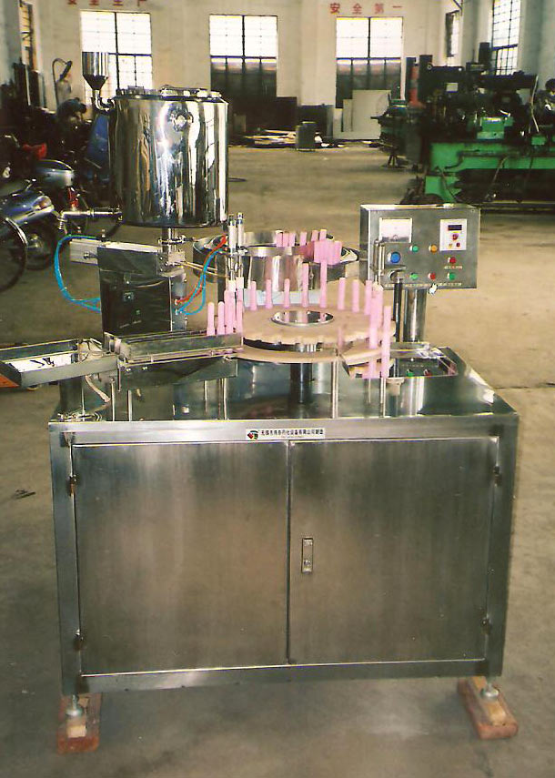 QGG型全自動(dòng)膏劑灌裝機(jī),是專用于目前國(guó)內(nèi)外新流行的婦科、肛腸科類專用藥劑、給藥器、注膏器或推射器及各類桿型特制器具的自動(dòng)灌裝封蓋設(shè)備。本機(jī)同時(shí)適用于一次性注射器、一次性注藥器、點(diǎn)膠器等桿型器具?勺詣(dòng)灌裝液體、膏體、油膠、油脂、樹脂、環(huán)氧膠等物料。本機(jī)具有自動(dòng)上管、自動(dòng)定位計(jì)量灌裝、自動(dòng)上帽、自動(dòng)上蓋、自動(dòng)壓蓋等功能。適用于制藥企業(yè)、醫(yī)院、精細(xì)化工企業(yè)、膠粘劑企業(yè)。在雙支注膏器內(nèi),可同時(shí)灌裝兩種不同的物料,如AB膠的甲乙兩支管具。本廠同時(shí)生產(chǎn)BGG型半自動(dòng)膏劑灌裝機(jī),除不能自動(dòng)上管、蓋帽,其他性能和QGG型全自動(dòng)膏劑灌裝機(jī)相同,但BGG型半自動(dòng)膏劑灌裝機(jī)的特點(diǎn),是可適用于不同桿徑和長(zhǎng)度的藥具,所以很受多品種小批量生產(chǎn)廠家歡迎。
