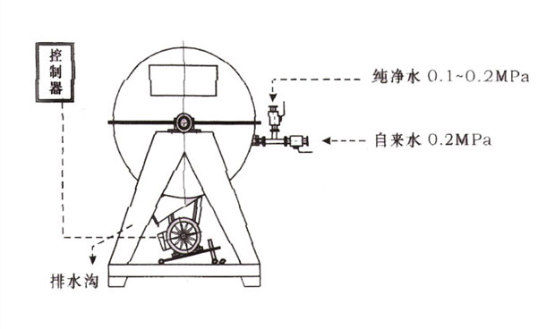 工作原理:將瓶連盤裝入該機(jī)的旋轉(zhuǎn)架上,打開(kāi)進(jìn)水閥門,啟動(dòng)電機(jī),變頻器將自動(dòng)控制電機(jī)慢速運(yùn)行進(jìn)行清洗,沖洗約60秒(可調(diào))后自動(dòng)高速運(yùn)行,將瓶中的水及雜質(zhì)甩出,達(dá)到清洗甩干的目的。