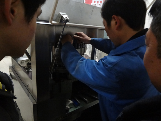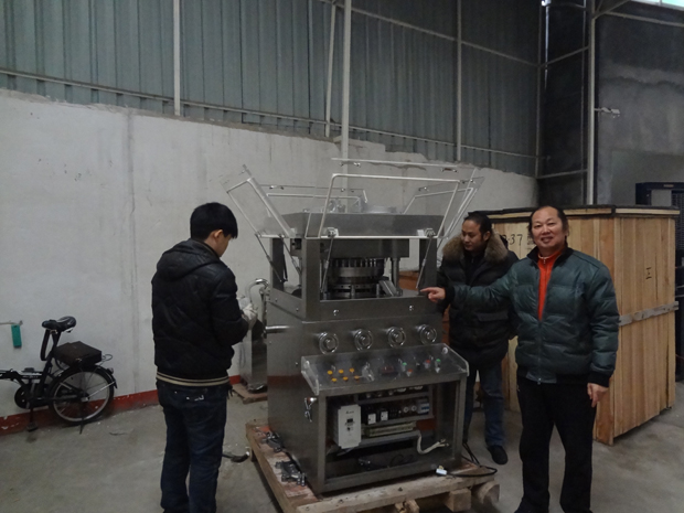 2011年12月,湖南化工職業(yè)技術(shù)學(xué)院向我廠購買了ZP-35D高速全封閉變頻壓片機(jī),圖為現(xiàn)場調(diào)試驗(yàn)收實(shí)況。