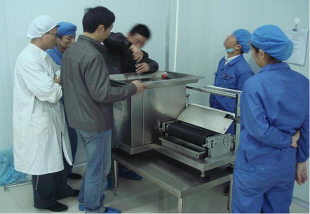 2011年10月,湖南株洲千金養(yǎng)生坊健康品有限公司向我廠購買了DZ-60型全自動制丸機、ZKB-K型顆粒包裝機、LM型煉蜜機、RXH-48盤熱循環(huán)烘箱、KZ-180型快速整粒機、CH-200型混合機、YK-160型重型顆粒機、GF-30B型帶除塵渦輪自冷式粉碎機組等設(shè)備,F(xiàn)已投入使用。