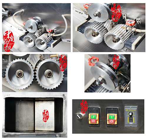 我廠生產(chǎn)的DZ-60型全自動制丸機,主要技術(shù)特點有兩點:一是混合物料進入工作腔后,特制螺桿可以將物料再一次擠揉,使從工作腔出來的物料成條形狀好,干濕度、粘稠度合適,便入下一步制丸,如物料出條不,還可以多次擠揉,達到程度。二是制丸成型滾輪可精細調(diào)節(jié),便于下條順利和成型美觀。