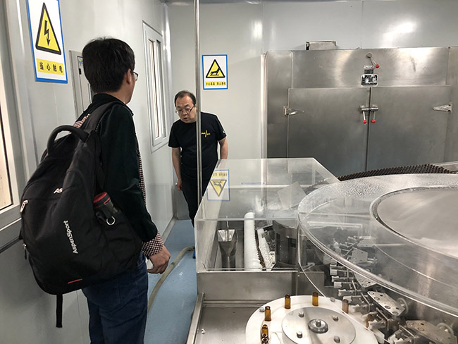 然后機(jī)械手再次翻轉(zhuǎn)180度使瓶口向上,并送至同步帶出瓶撥塊上,出瓶撥輪將瓶子逐個(gè)推出,瓶子進(jìn)入烘箱或出瓶盤上。